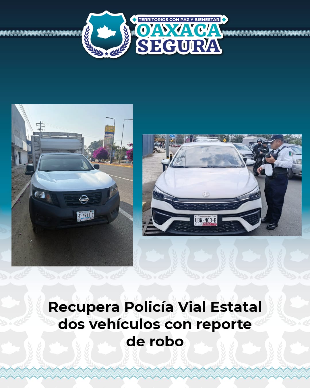Recupera Policía Vial Estatal dos vehículos con reporte de robo en los Valles Centrales de Oaxaca