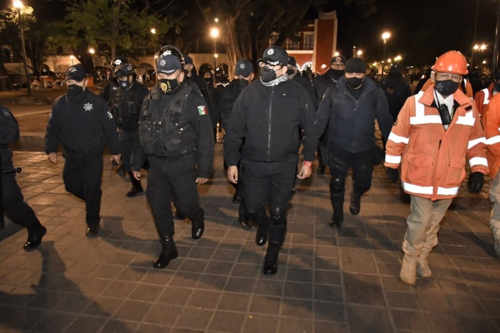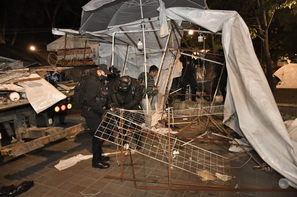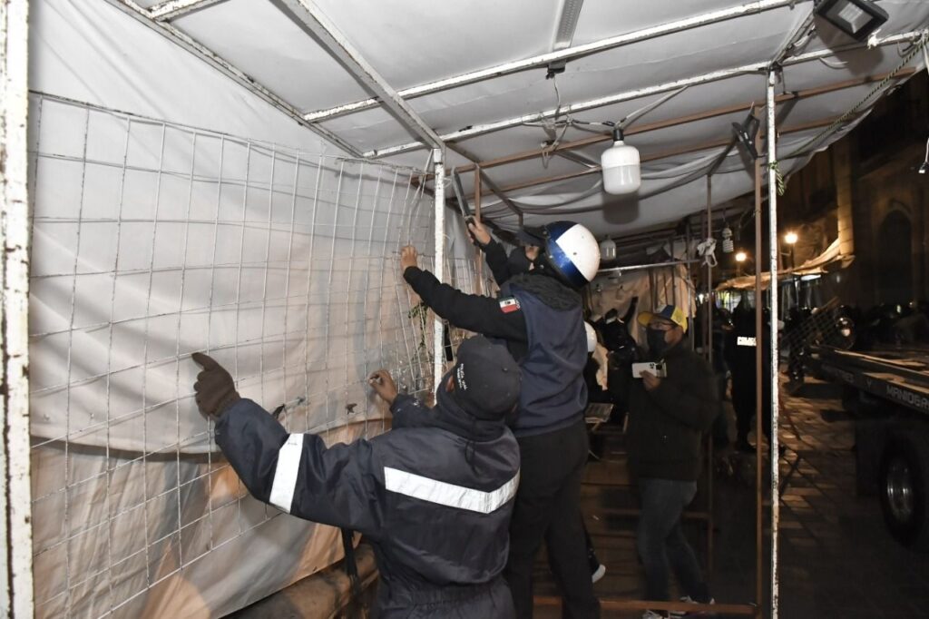 Hoy por la madrugada elementos de la policía municipal retiraron cerca de 60 estructuras de comercio informal que se encontraban en el Zócalo de la ciudad, frente al Palacio de Gobierno de Oaxaca.