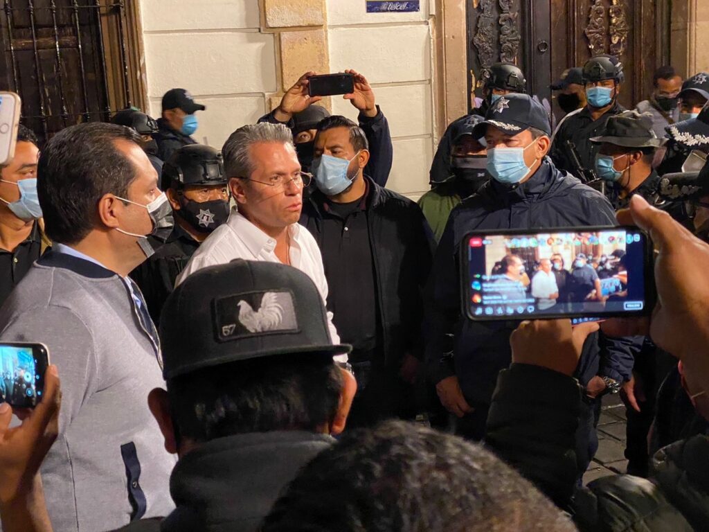 Este jueves por la noche, elementos de la Policia Estatal, Policia Vial, Policia Auxiliar Bancaria, Industrial y Comercial (PABIC), asi como elemento de la Policia municipal, retiraron los puestos ambulantes que se encontraban en el primer cuadro de la capital, previo a la noche de rábanos.