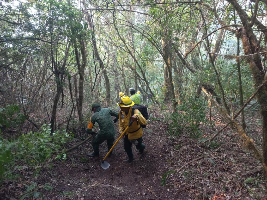 • La conflagración que afectó el Cerro de Las Flores fue atendida en dos frentes por personas comuneras, brigadas de la Coesfo y elementos de la Sedena y Guardia Nacional