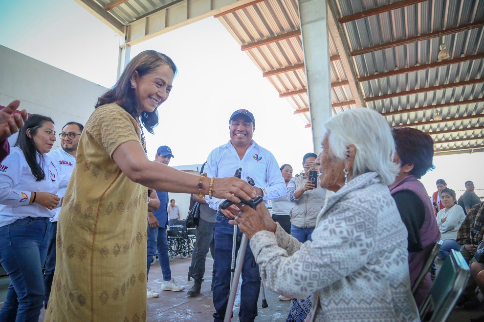Región Valles Centrales, Oax., 12 de enero de 2024.- Con el propósito de llevar salud, bienestar y garantizar el acceso a una alimentación de calidad, la Presidenta Honoraria del Sistema para el Desarrollo Integral de la Familia (DIF) Oaxaca, Irma Bolaños Quijano, visitó cinco municipios de esta región para entregar dotaciones alimentarias, aparatos funcionales y lentes de vista cansada.