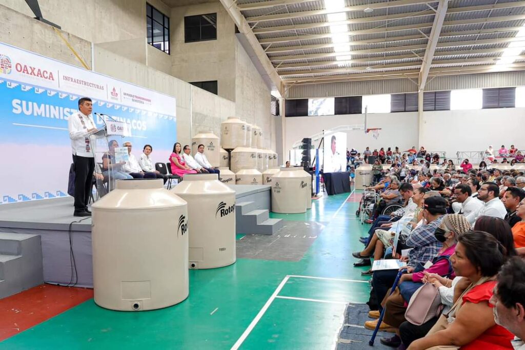 En el marco del Programa Estratégico de Agua Potable y Saneamiento, Agua para Todas y Todos, puesto en marcha por el Gobierno del Estado, ante personas beneficiarias, el Mandatario oaxaqueño destacó que junto a la asociación civil Congregación Mariana Trinitaria se realizó una inversión de 19 millones de pesos para dotar de estos tinacos, principalmente, a jefas de familia y personas adultas mayores.