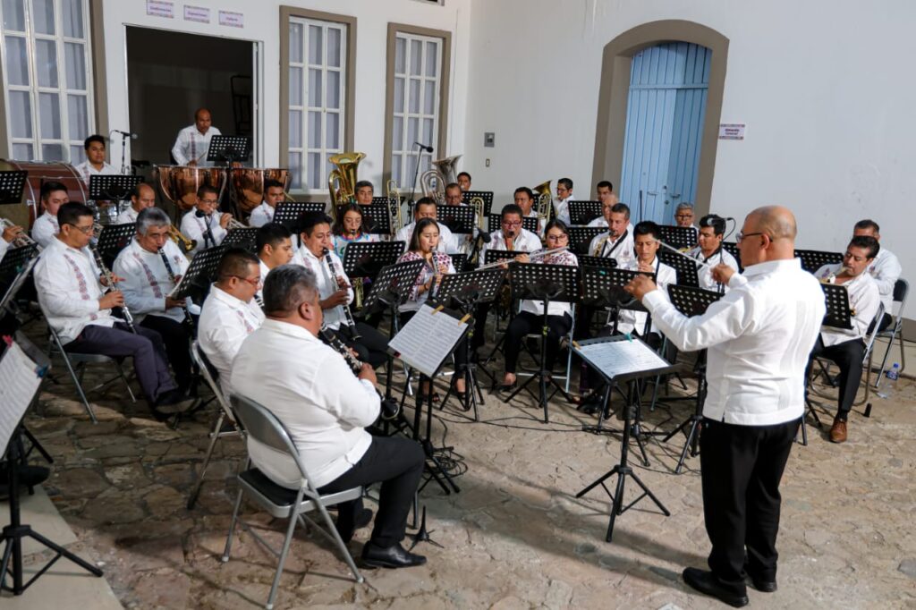 El programa se realizó desde un inmueble recién recuperado, considerado patrimonio de las y los oaxaqueños, ubicado en la calle Vicente Guerrero, Colonia Centro, espacio que servirá para que la Banda de Música del Estado tenga un espacio adecuado para poder ensayar.