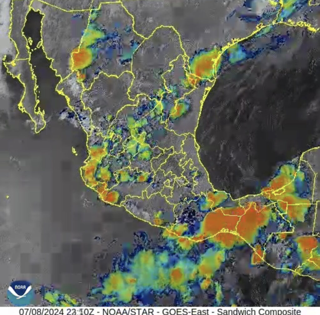 Oaxaca de Juárez, Oax. 8 de julio de 2024.- La Coordinación Estatal de Protección Civil y Gestión de Riesgos (CEPCyGR) informa a la población que la onda tropical número 8 estará muy activa y transitará la tarde y noche de este lunes sobre el estado de Oaxaca, dejando lluvias y tormentas puntualmente fuertes.