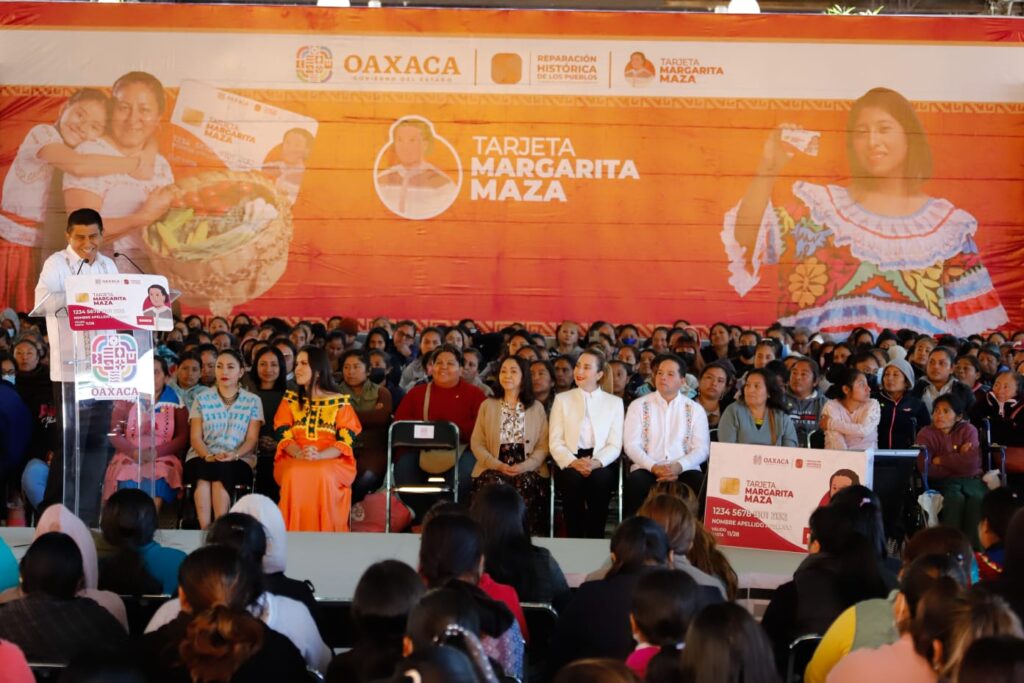 De esta manera, junto a la Presidenta Honoraria del Sistema para el Desarrollo Integral de la Familia (DIF) Oaxaca, Irma Bolaños Quijano, el Gobernador de Oaxaca entregó recursos por el orden de 30 millones de pesos a jefas de familia de entre 18 a 64 años beneficiarias con el programa Tarjeta Margarita Maza, quienes recibieron el apoyo económico correspondiente a tres bimestres (enero a junio).
