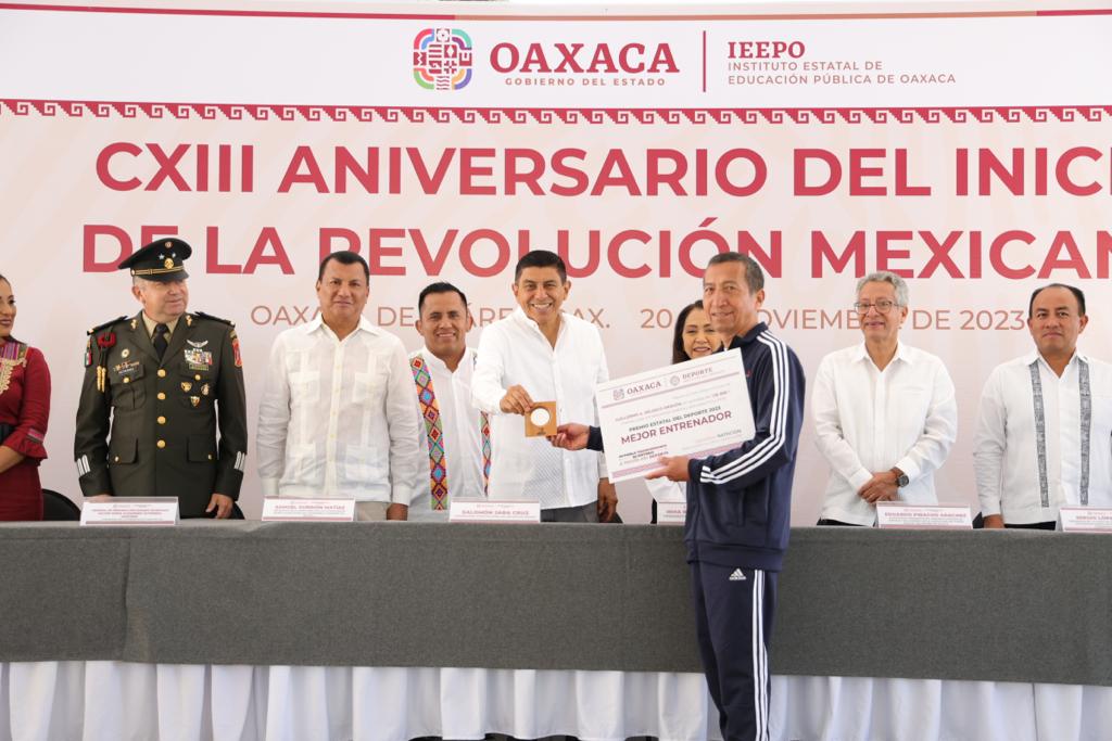 • En el marco de este acto, el Gobernador Salomón Jara Cruz entregó los Premios Estatales del Deporte 2023