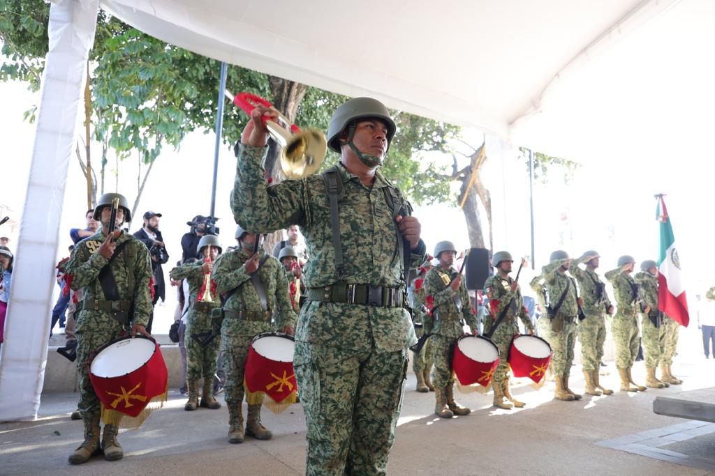 El titular del Poder Ejecutivo también realizó la imposición de insignias militares a personal que asciende al grado inmediato superior por su esfuerzo, empeño y dedicación: el General Brigadier Diplomado de Estado Mayor Armando López Esquivel, el Comisario Lucio Vergara Gómez y el Capitán Primero de Artillería Ricardo Samuel Martínez Vásquez.