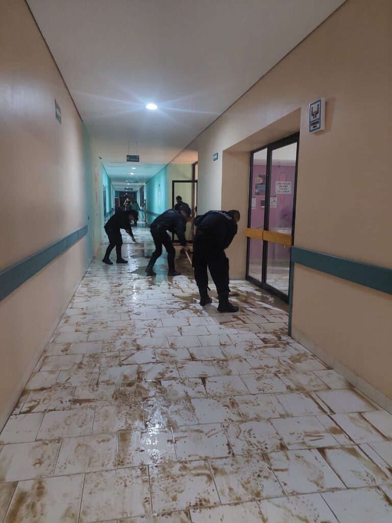 Asimismo, se llevó a cabo la inspección y evaluación del nosocomio, en el que se realizaron los trabajos necesarios para abrir y limpiar las juntas constructivas por donde se está dando salida al agua estancada.