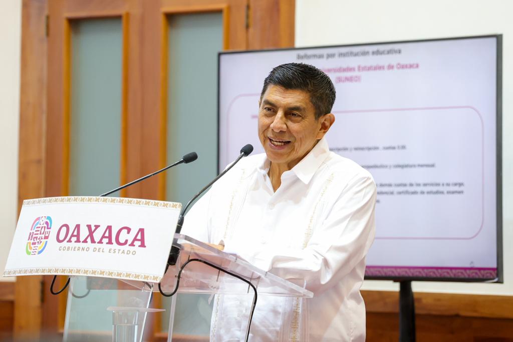 • El Sistema de Universidades Estatales de Oaxaca (Suneo) eliminará el pago de inscripción, reinscripción, curso propedéutico, colegiatura mensual y reducirá el 50 por ciento en cuotas de otros servicios a partir del Ejercicio Fiscal 2024