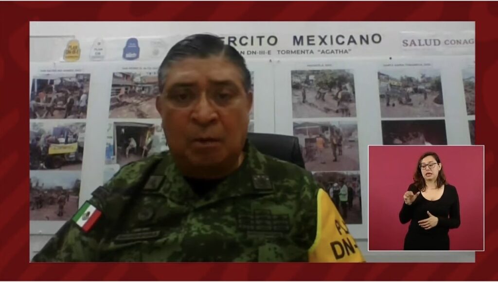 Por su parte, el titular de la Secretaría de la Defensa Naciona, Luis Cresencio Sandoval, informó que ayer arribaron a Oaxaca 450 elementos para reformar el Plan DNIIIE, además, dijo que se desplegaron 13 células de sanidad para atención médico en la región afectada por Ágatha.