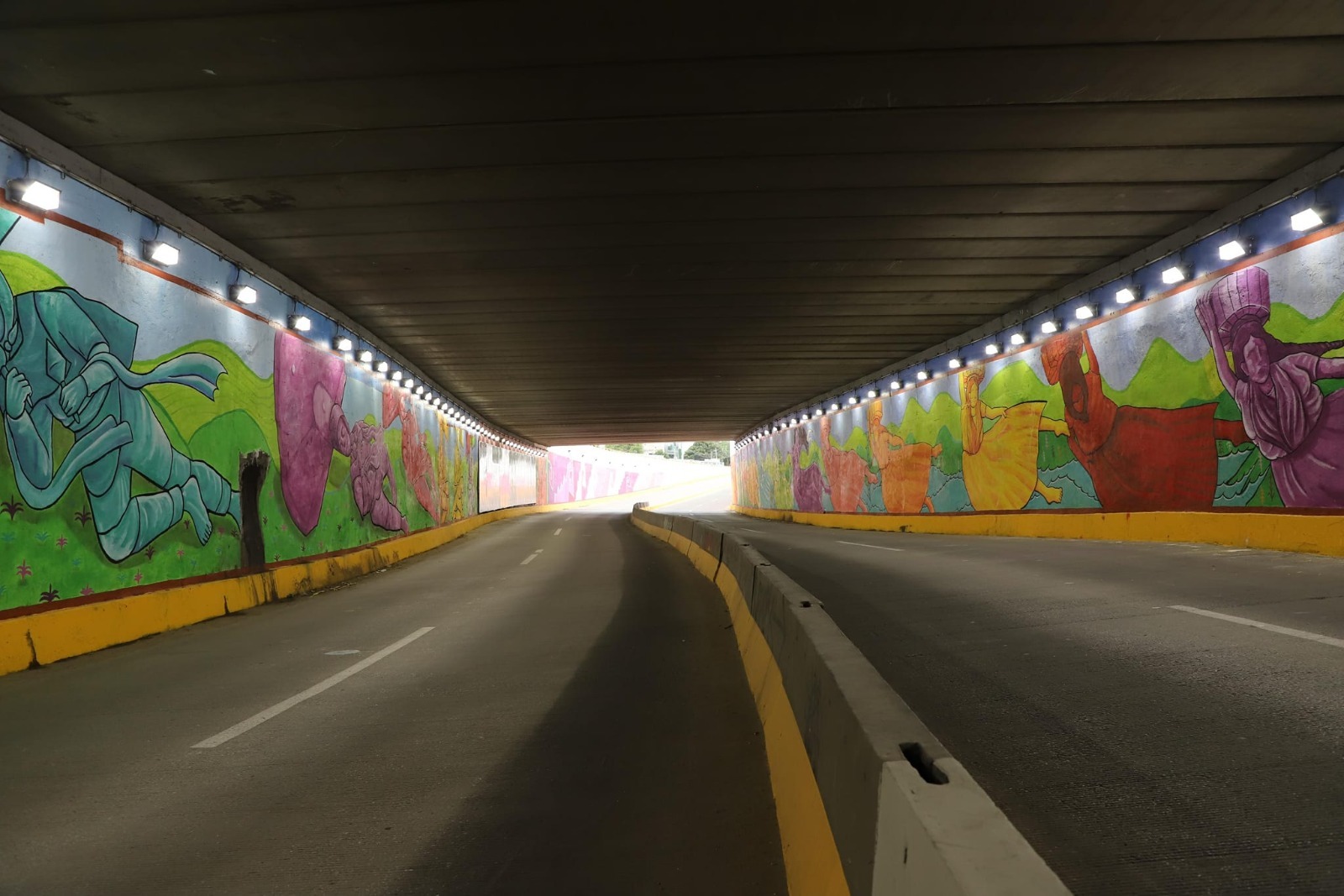 Oaxaca de Juárez, Oax. 19 de julio de 2024.- Como parte de las acciones para reconstruir el tejido social y recuperar los espacios públicos, el Gobierno del Estado de Oaxaca inauguró el mural “Chinas y Danzantes subterráneos” dirigido por el artista plástico Andreas Méndez, en el paso a desnivel de Cinco Señores sobre la avenida Universidad, en la capital oaxaqueña.