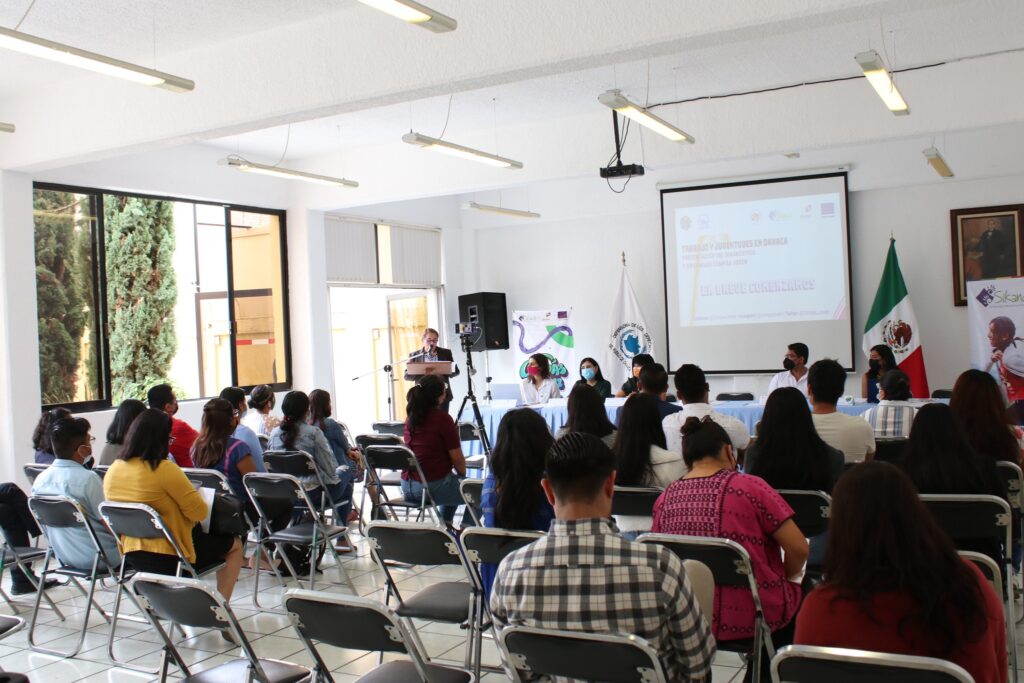 Por su parte, la coordinadora de Valles Centrales de Compás Joven Oaxaca/SiKanda A.C, Estefany Cuevas indicó que, entre los hallazgos del diagnóstico de juventudes en Oaxaca, se pudo identificar la división sexual del trabajo de hombres y mujeres, la dificultad de las juventudes al quedar desempleados durante la pandemia por Covid 19, la diferencia entre los ingresos de trabajos formales e informales, entre otros.
