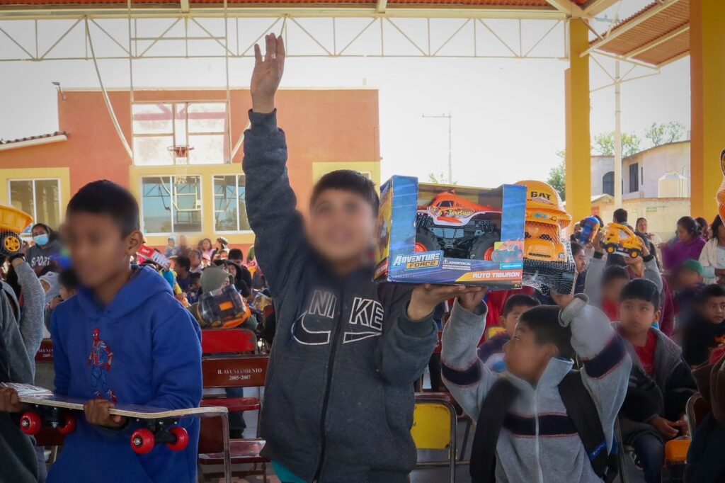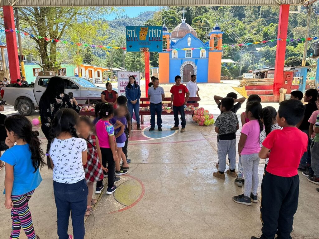 A temprana hora, Irma Bolaños Quijano, Presidenta Honoraria del organismo estatal llegó a Santiago Apóstol y Santa Ana Zegache, en la región Valles Centrales, para entregar junto a las autoridades municipales los juguetes que despertaron alegría y diversión en las niñas, niños y bebés, que con agrado por las figuras y colores comenzaron a mostrarse entre todas y todos.