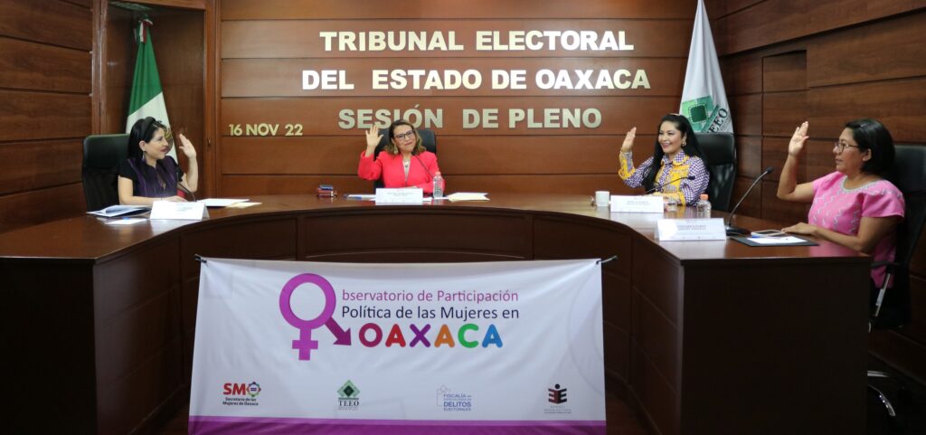 En el desahogo de la sesión, las titulares de las instituciones que conforman el Observatorio eligieron, también, a la presidenta del Tribunal Electoral del Estado de Oaxaca como secretaría técnica de este mecanismo; en tanto, la consejera presidenta del Instituto Estatal Electoral y de Participación Ciudadana de Oaxaca (IEEPCO), Elizabeth Sánchez González fue designada como vocal, al igual que la titular de la Secretaría de las Mujeres de Oaxaca, Ana Vásquez Colmenares.