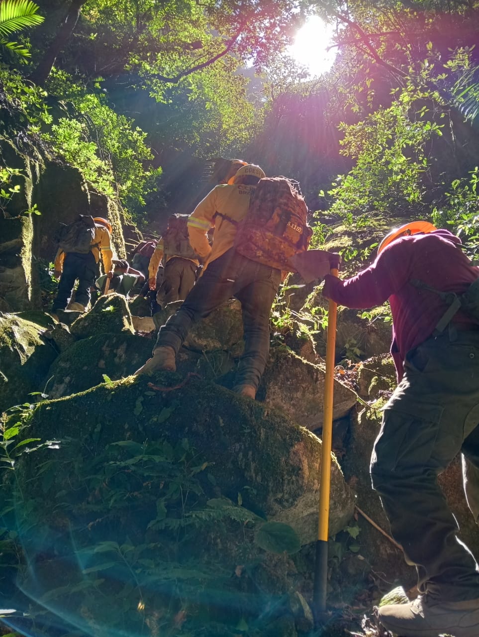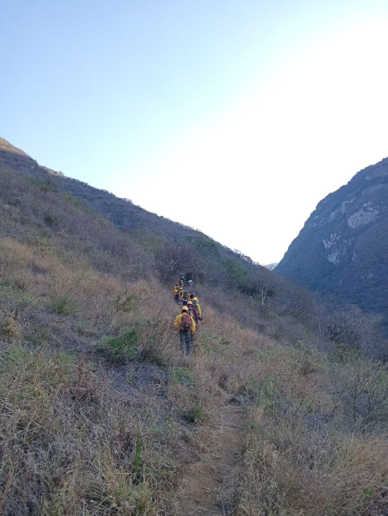 Desde la mañana de este sábado, las labores de combate, control y liquidación se realizan por parte de combatientes de brigadas de Coesfo y la Comisión Nacional Forestal (Conafor), así como de 25 personas comuneras.