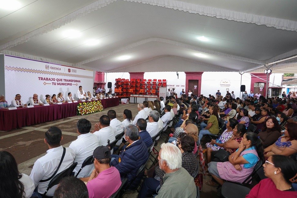 «En todo Oaxaca estamos haciendo pública la inversión que vamos a desarrollar en cada municipio; mi reconocimiento por todo lo que han hecho por Santa Lucía y todo lo que acabamos de decir, lo vamos a cumplir «, subrayó el Titular del Poder Ejecutivo.