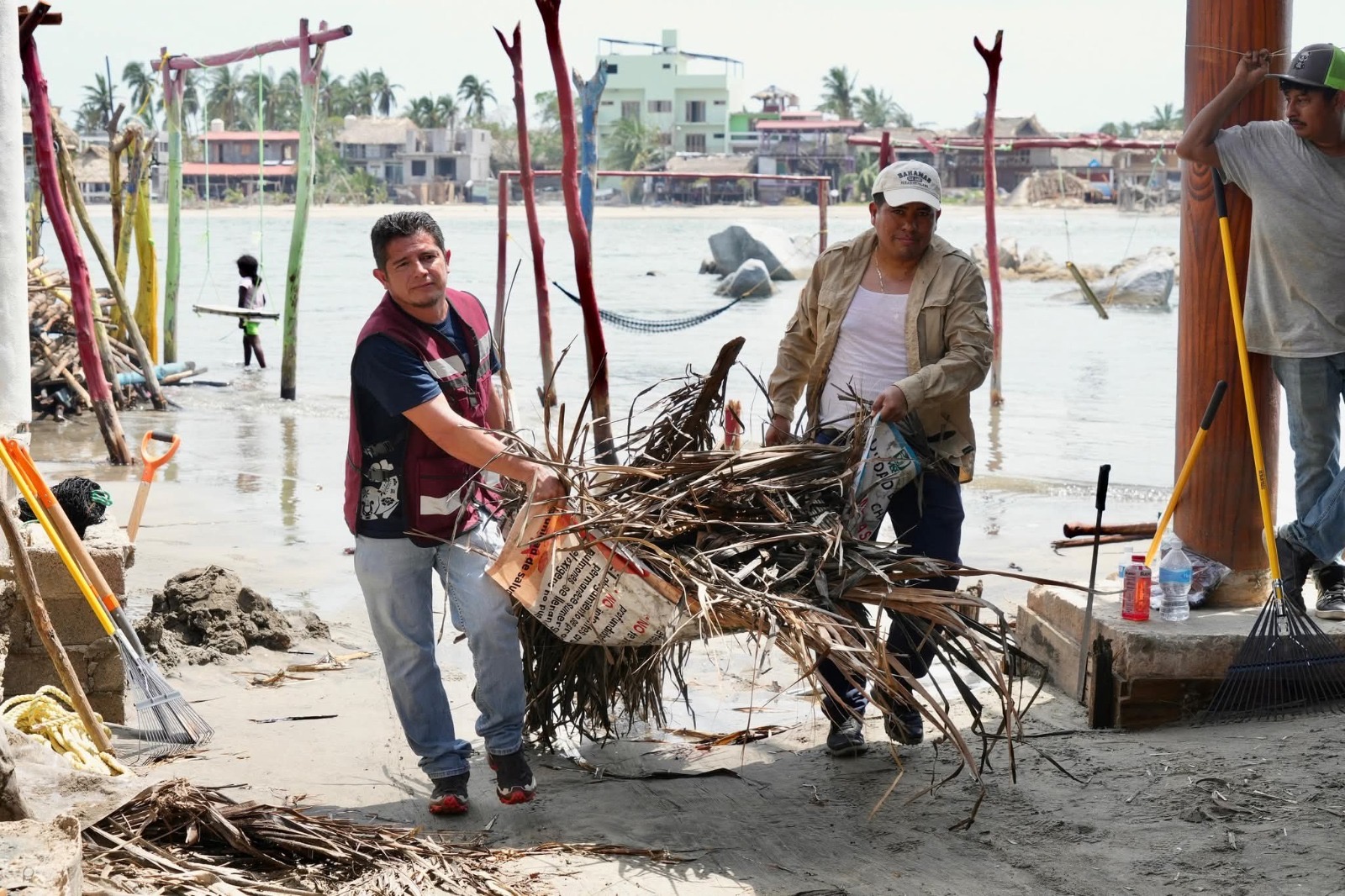 Aunado a ello, se realizaron acciones de limpieza los días 23 y 24 de junio en Santiago Pinotepa Nacional, en las localidades de Banco de Oro y Playa Guadalupe. Asimismo, en Corralero, se removieron 23 toneladas de escombros con 2 camiones y 2 retroexcavadoras; en Mariano Matamoros fueron 8 toneladas con 1 camión y 1 retroexcavadora; mientras que, en Paso de la Garrocha, 28 toneladas con 1 camión y 1 retroexcavadora.