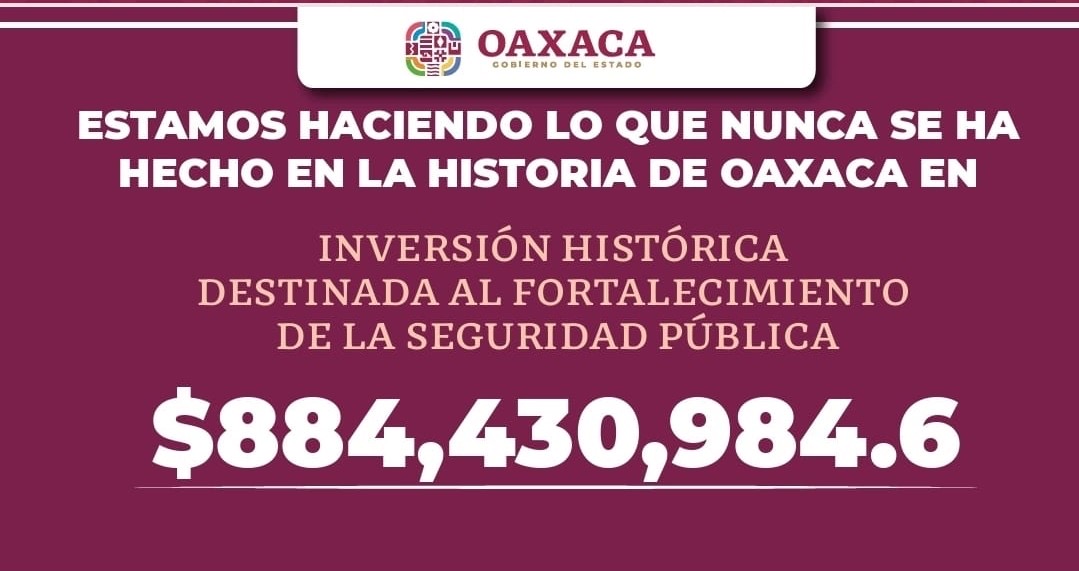 Oaxaca de Juárez, Oax. 8 de septiembre de 2025.- Durante el Gobierno de la Primavera Oaxaqueña, a través del Secretariado Ejecutivo del Sistema Estatal de Seguridad Pública (SESESP), se ha realizado una inversión histórica superior a 884 millones de pesos, destinada al fortalecimiento de la paz social.