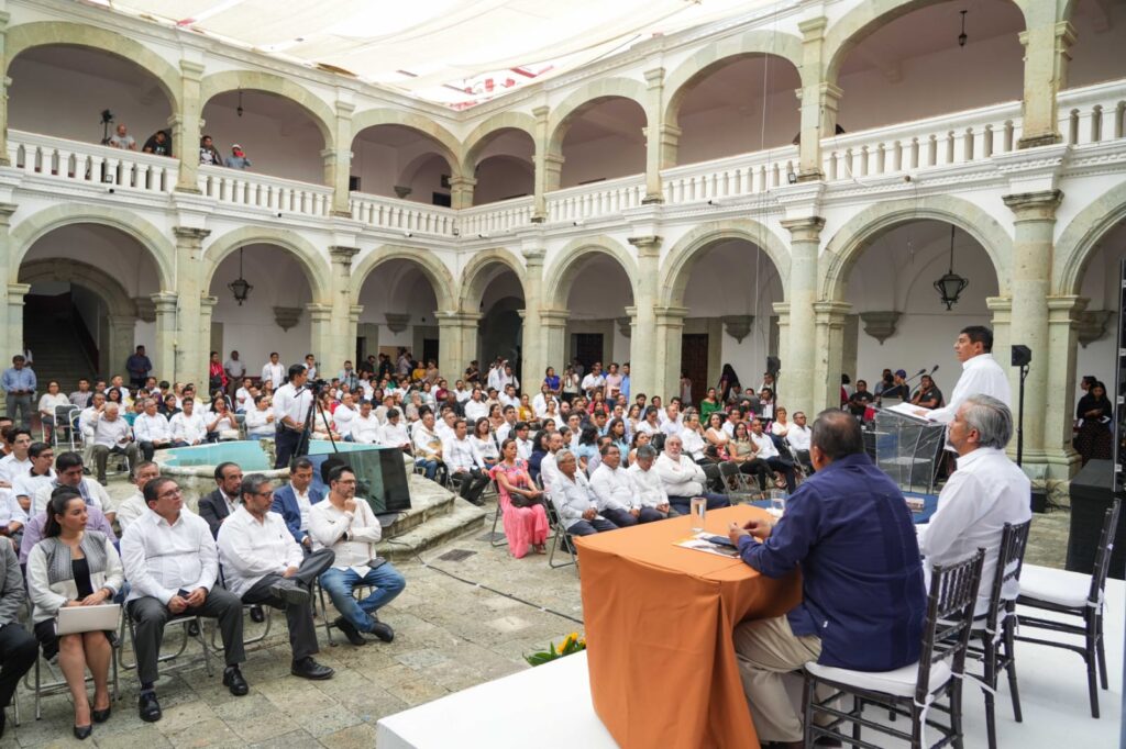 Ante exrectores de la institución, 180 consejeras y consejeros universitarios acreditados legalmente, personal administrativo, profesorado y estudiantes, destacó que desde el Gobierno estatal se trabaja para construir un nuevo rumbo para la entidad, con más igualdad y bienestar, pero sobre todo con más educación, compromiso y altura de miras, a fin de escribir una narrativa de un Oaxaca más justo.
