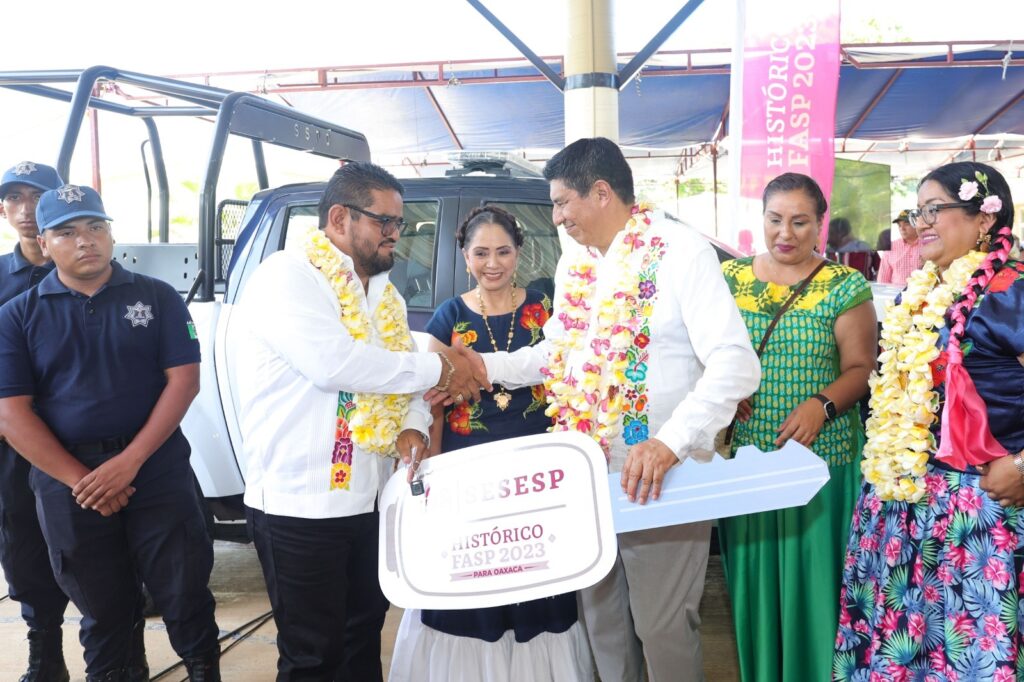 En este acto, el Mandatario Estatal entregó una patrulla para el fortalecimiento a la seguridad de esta localidad y a través del Secretariado Ejecutivo del Sistema Estatal de Seguridad Pública (SESESP) anunció que se otorgará un estímulo fiscal por 56 mil 730 pesos para la certificación de policías.
