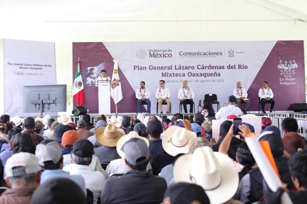 En este municipio mixteco, pobladores y autoridades fueron testigos del arranque de esta obra de 160.3 kilómetros, que realizó el Gobernador Salomón Jara Cruz y el secretario de Infraestructura, Comunicaciones y Transportes (SICT), Jesús Antonio Esteva Medina; y que corresponde a uno de los cinco tramos carreteros que contempla el Plan General Lázaro Cárdenas del Río, implementado por la Presidenta Claudia Sheinbaum Pardo.