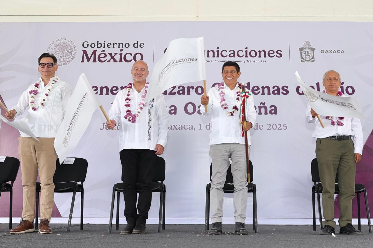 En este municipio mixteco, pobladores y autoridades fueron testigos del arranque de esta obra de 160.3 kilómetros, que realizó el Gobernador Salomón Jara Cruz y el secretario de Infraestructura, Comunicaciones y Transportes (SICT), Jesús Antonio Esteva Medina; y que corresponde a uno de los cinco tramos carreteros que contempla el Plan General Lázaro Cárdenas del Río, implementado por la Presidenta Claudia Sheinbaum Pardo.