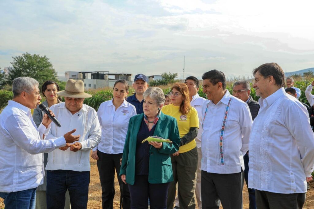 En el marco de esta visita, a través de la Secretaría de Fomento Agroalimentario y Desarrollo Rural (Sefader), se mostraron los módulos de investigación de maíces nativos y del sistema milpa, que fortalece la calidad genética que se siembra en el estado.