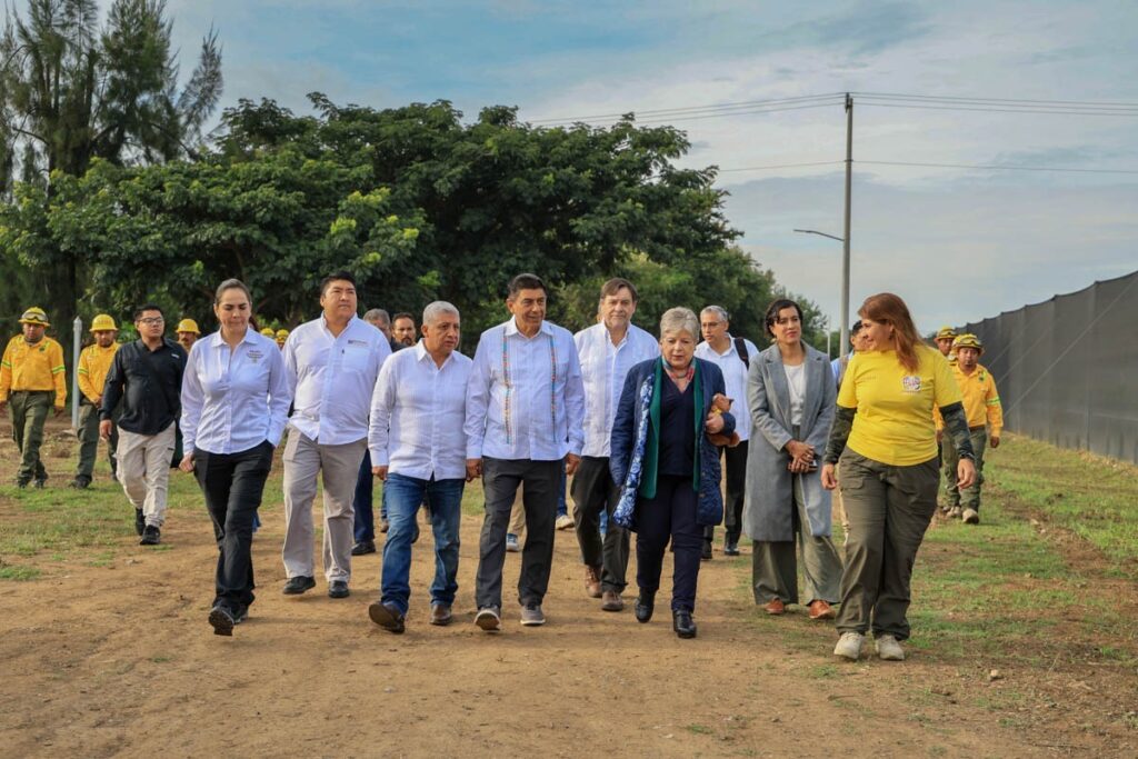 Santa Cruz Xoxocotlán, Oax. 3 de octubre de 2025.- En el marco de la visita a Oaxaca de la titular de la Secretaría de Medio Ambiente y Recursos Naturales (Semarnat) del Gobierno de México, Alicia Bárcena Ibarra; el Gobernador Salomón Jara Cruz dio a conocer las acciones impulsadas en materia de conservación del patrimonio natural.