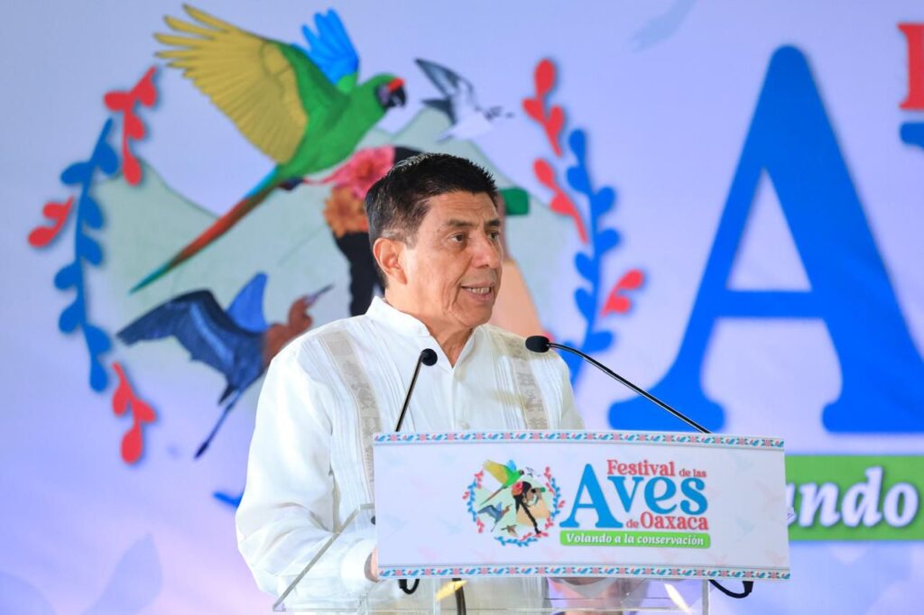 Santa Lucía del Camino, Oax. 28 de noviembre de 2025.- El Gobernador Salomón Jara Cruz inauguró la tercera edición del Festival de las Aves de Oaxaca 2025 “Volando a la Conservación”, espacio de divulgación, educación ambiental y reconocimiento a la red de monitoreo y aviturismo comunitario Nandaa Ñu’u, que en mixteco significa “los que cuidan la tierra”.
