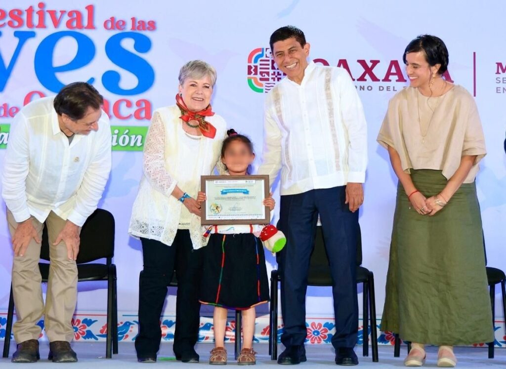 En este marco, también entregó reconocimientos a ocho representantes de grupos de monitoreo y aviturismo de las regiones Valles Centrales, Sierra de Juárez, Cuenca del Papaloapan y Costa. Además, otorgó certificados a las personas ganadoras del concurso de dibujo infantil y fotografía.