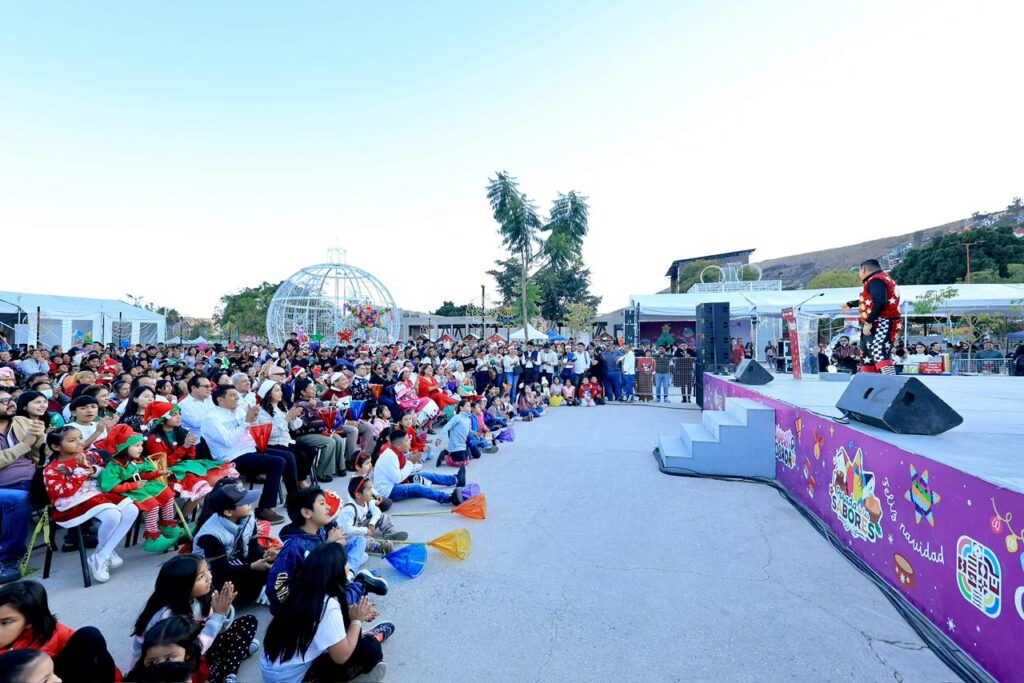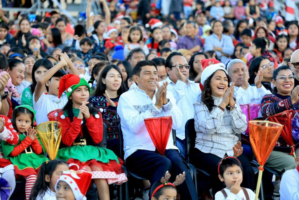 Oaxaca de Juárez, Oax. 22 de diciembre de 2025.- En un ambiente de alegría, luces y tradición navideña, la Presidenta Honoraria del Sistema para el Desarrollo Integral de la Familia (DIF) Oaxaca, Irma Bolaños Quijano y el Gobernador Salomón Jara Cruz, encabezaron la Diverti Posada; un evento dirigido a la niñez que reunió a cientos de familias en el Parque Primavera Cho Ndobá.