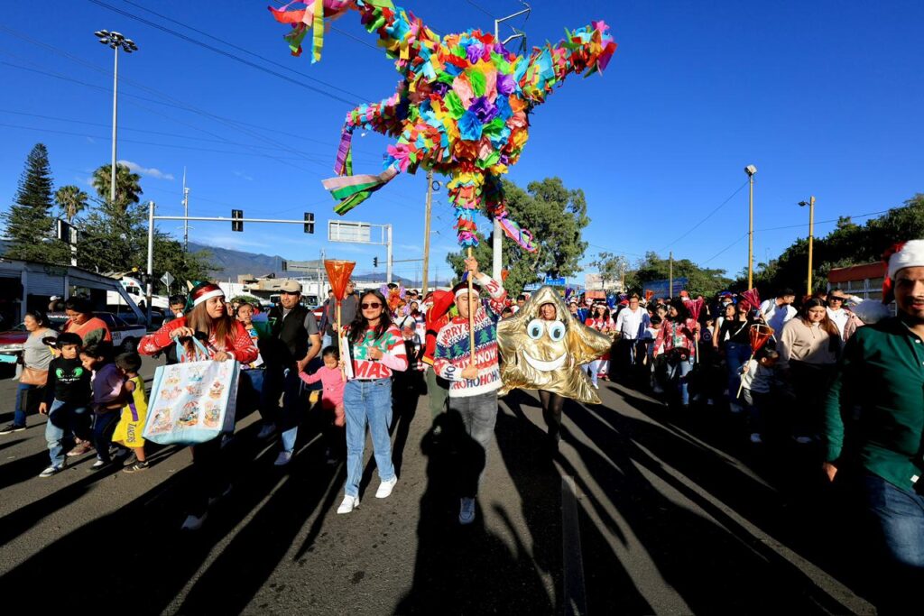 De manera previa a estas actividades, se realizó un recorrido en las calles que partió de las instalaciones del organismo estatal. El trayecto estuvo amenizado por carros alegóricos iluminados, personajes navideños, faroles y piñatas que llenaron de color el camino.