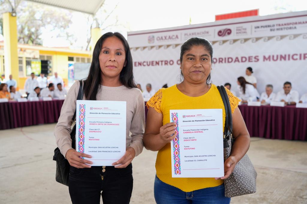 Las instituciones educativas beneficiadas en esta ocasión y que por más de diez años, los gobiernos anteriores mantuvieron sin clave y en el olvido son la Escuela Primaria Indígena “Josefa Ortiz de Domínguez” de la localidad de San Francisco Loxicha y el Preescolar Indígena “Gabriela Mistral” de El Camalote, ambas pertenecientes al municipio de San Agustín Loxicha.