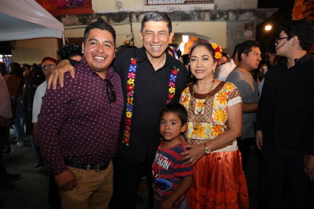 Oaxaca de Juárez, Oax. 30 de octubre de 2025.- Entre flores de cempasúchil, el inconfundible olor a copal y música tradicional; el Gobernador Salomón Jara Cruz junto a la Presidenta Honoraria del Sistema DIF Oaxaca, Irma Bolaños Quijano; compartieron con cientos de personas chocolate, café, pan y tamales en la Verbena Popular Xandú.