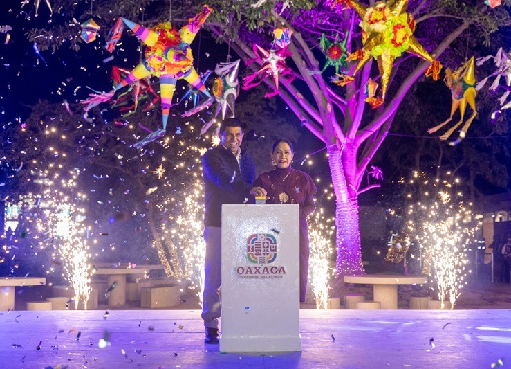 Oaxaca de Juárez, Oax. 4 de diciembre de 2024.- Con el resplandor de cientos de luces iluminando el cielo, el Gobernador Salomón Jara Cruz y la Presidenta Honoraria del Sistema Estatal para el Desarrollo Integral de la Familia (DIF), Irma Bolaños Quijano, inauguraron el Festival Navideño del Parque Primavera Oaxaqueña Cho Ndobá.
