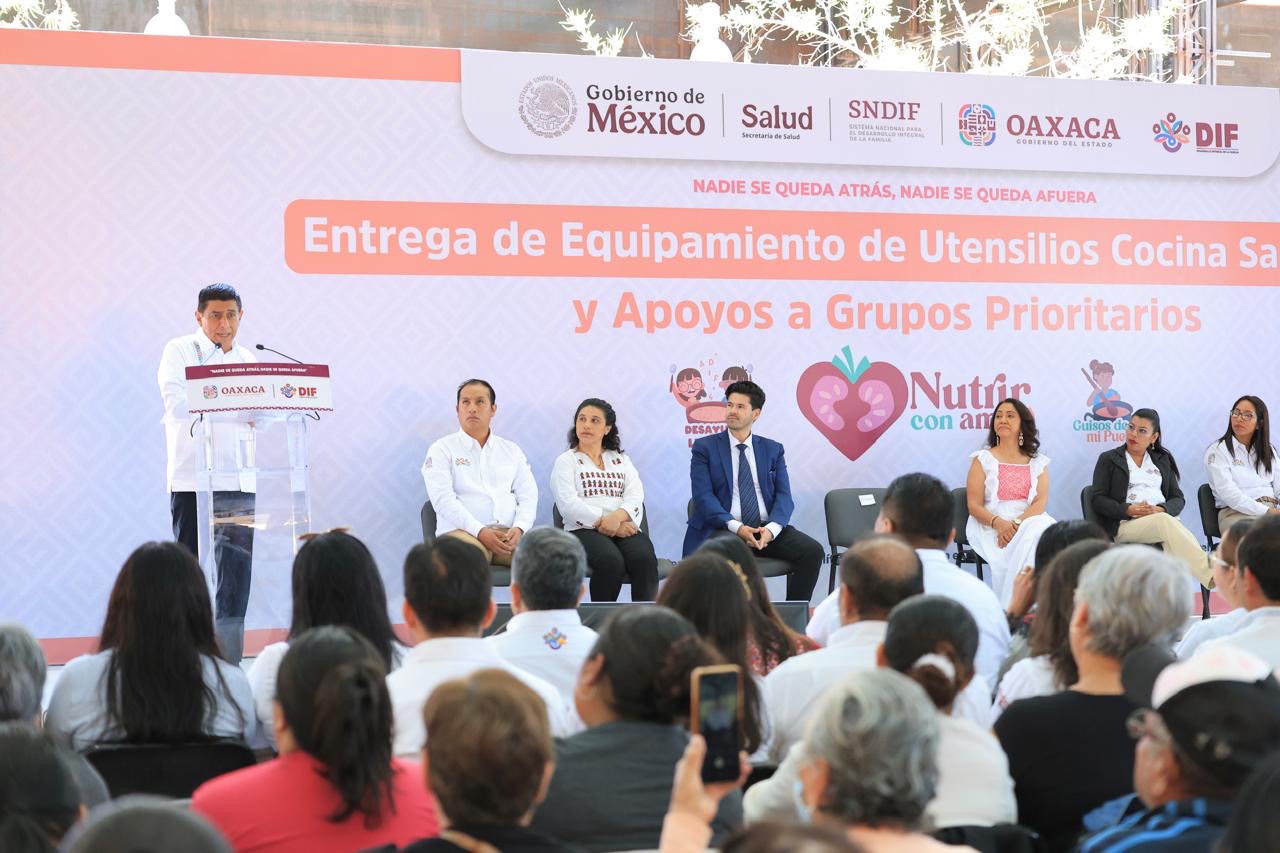 A su vez, el Mandatario Estatal, Salomón Jara Cruz dijo sentirse honrado porque la cadena de solidaridad que representan las personas involucradas en la preparación de alimentos calientes para la niñez y familias, ha permitido que tengan acceso a una alimentación saludable y digna.