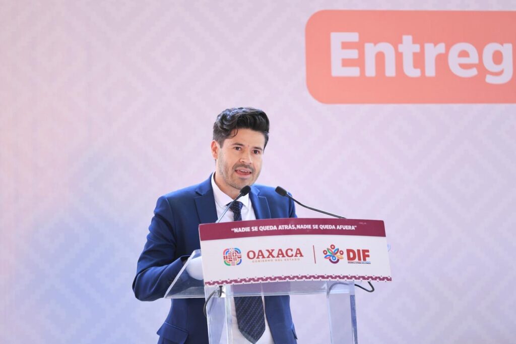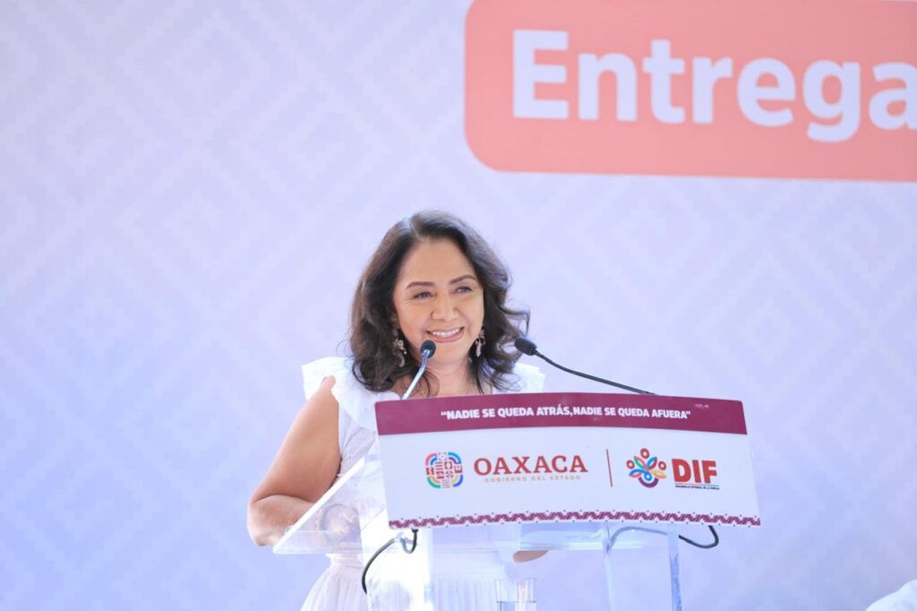 La entrega fue encabezada por la Presidenta Honoraria del Sistema DIF Oaxaca, Irma Bolaños Quijano, junto al Gobernador Salomón Jara Cruz, con la presencia del subdirector de Capacitación y Vinculación Interinstitucional del Sistema Nacional para el Desarrollo Integral de la Familia (SNDIF), José Rodolfo Pérez Ruiz.