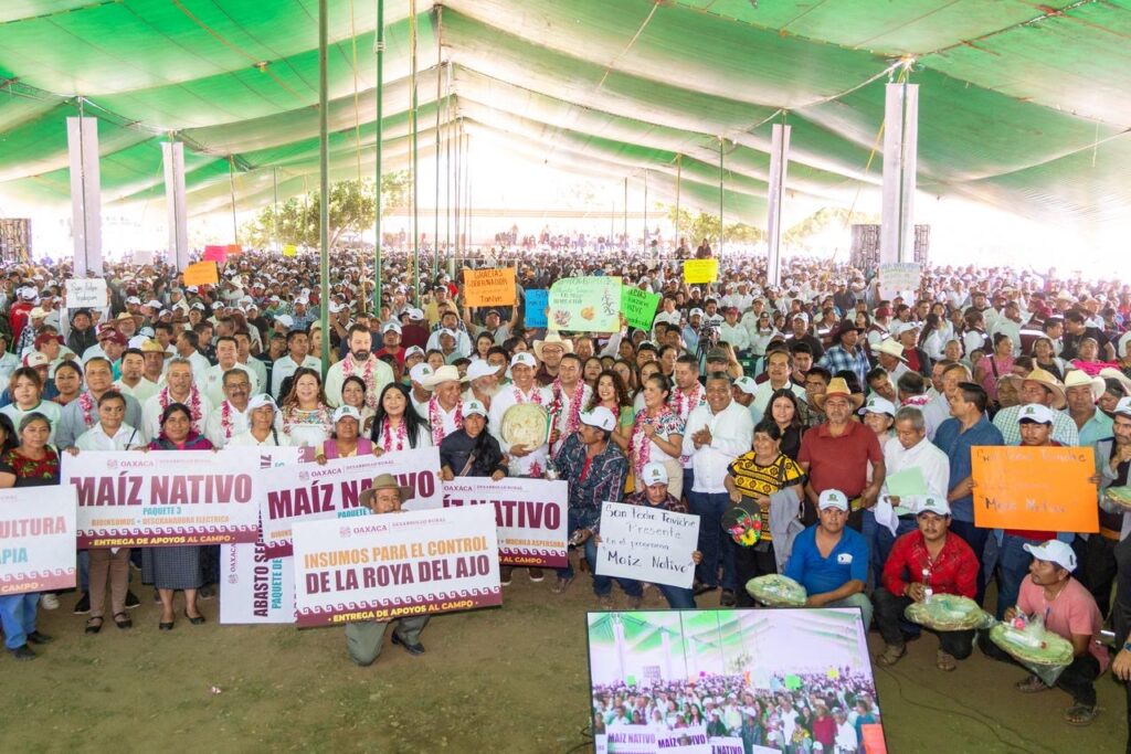 “Me da mucho gusto encontrarme en esta jornada con mujeres y hombres que son la fortaleza del campo oaxaqueño, quienes garantizan el abasto alimentario de nuestro pueblo y preservan saberes que vienen de muchas generaciones, aquí está la raíz de nuestra identidad y también la base de nuestra soberanía alimentaria”, subrayó.