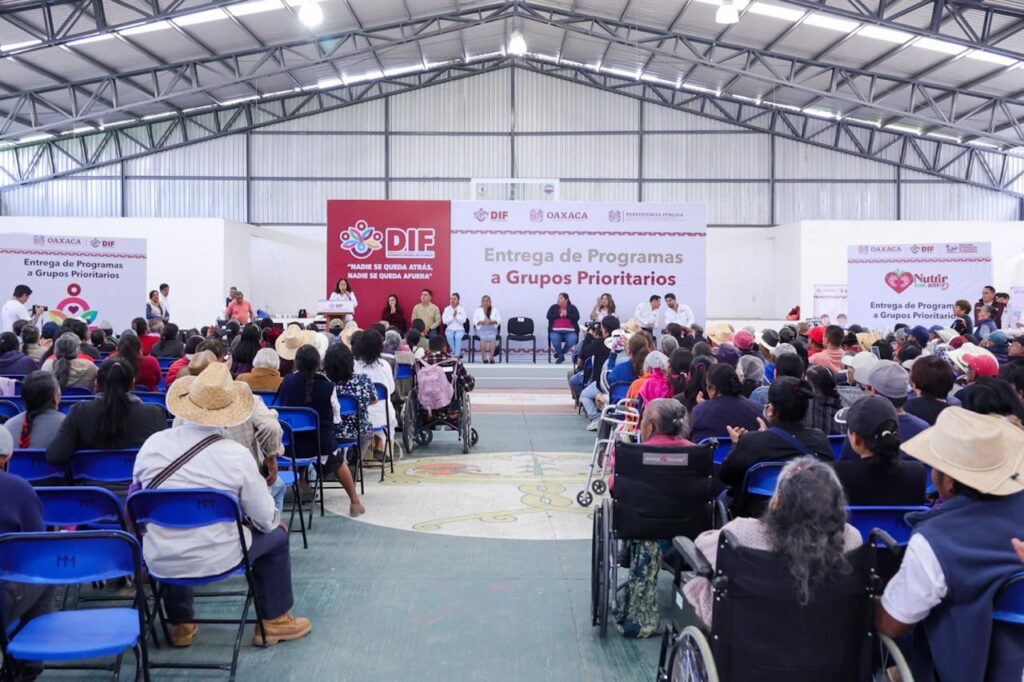 “Les saludo con mucho cariño y reconozco su presencia para recibir de manera directa estos apoyos con los que podrán hacer sus actividades en casa. Recuerden que para el Sistema DIF Oaxaca es importante llegar a ustedes y recordarles los servicios y beneficios que están a su alcance, en garantía a sus derechos”, destacó la Presidenta Honoraria acompañada de directivos del organismo estatal y autoridades municipales.