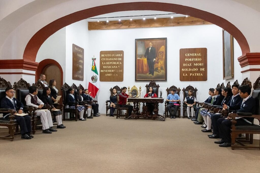 Oaxaca de Juárez, Oax., 28 de agosto de 2025.– Con la participación de estudiantes de secundaria y bachillerato, el Ayuntamiento de Oaxaca de Juárez llevó a cabo la instalación del Cabildo Juvenil 2025, un ejercicio que abrió las puertas del Salón Porfirio Díaz Mori para que las nuevas generaciones expresaran sus ideas y propuestas sobre el futuro de la ciudad.
