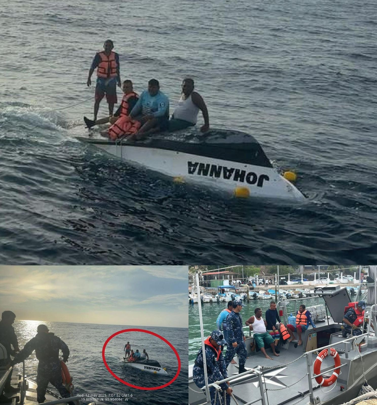 Desde el momento del reporte, una unidad defender de Capitanía del Puerto de Huatulco y dos interceptoras de búsqueda y rescate de la Secretaría de Marina (Semar) implementaron un operativo, lo que permitió la localización de esta embarcación.
