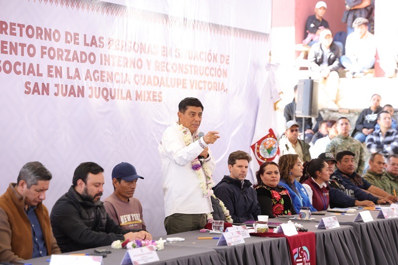 San Juan Juquila Mixes, Oax. 4 de noviembre de 2025.- En un hecho histórico y de justicia, el Gobernador Salomón Jara Cruz encabezó el retorno de 63 familias a la agencia Guadalupe Victoria del municipio San Juan Juquila Mixes; tras 8 años de desplazamiento forzado interno, como parte de la reconstrucción del tejido social que impulsa la Primavera Oaxaqueña.