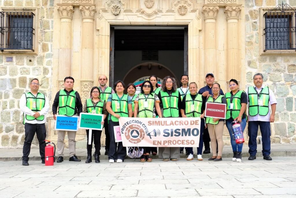 Oaxaca de Juárez, Oax., 19 de septiembre de 2025.- En el marco del Segundo Simulacro Nacional 2025, el Ayuntamiento de Oaxaca de Juárez participó de manera activa con la evacuación ordenada de vecinas, vecinos y trabajadores en el Palacio Municipal, ubicado en el corazón de la ciudad.
