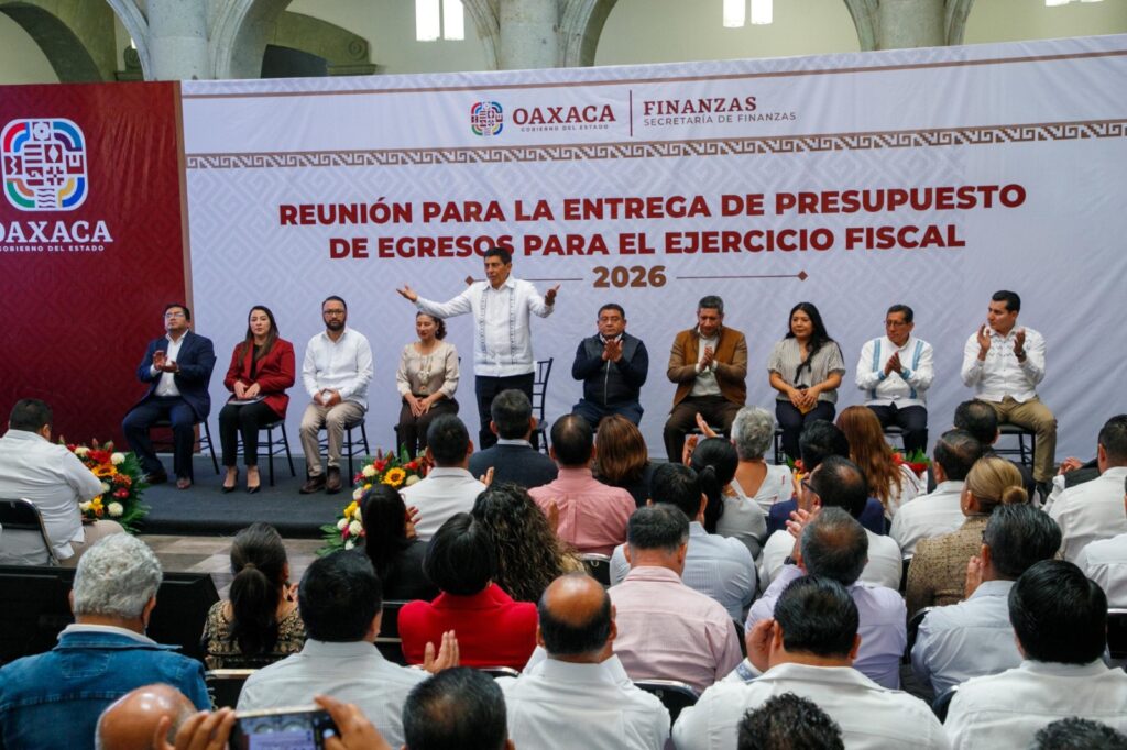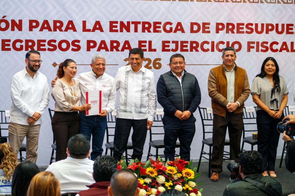 Oaxaca de Juárez, Oax. 22 de diciembre de 2025.- El Gobernador Salomón Jara Cruz encabezó la entrega a las dependencias gubernamentales, del presupuesto de egresos correspondiente al Ejercicio Fiscal 2026; instrumento que orientará la ejecución del gasto público durante el próximo año, para que se traduzca en resultados concretos en beneficio de la población oaxaqueña.