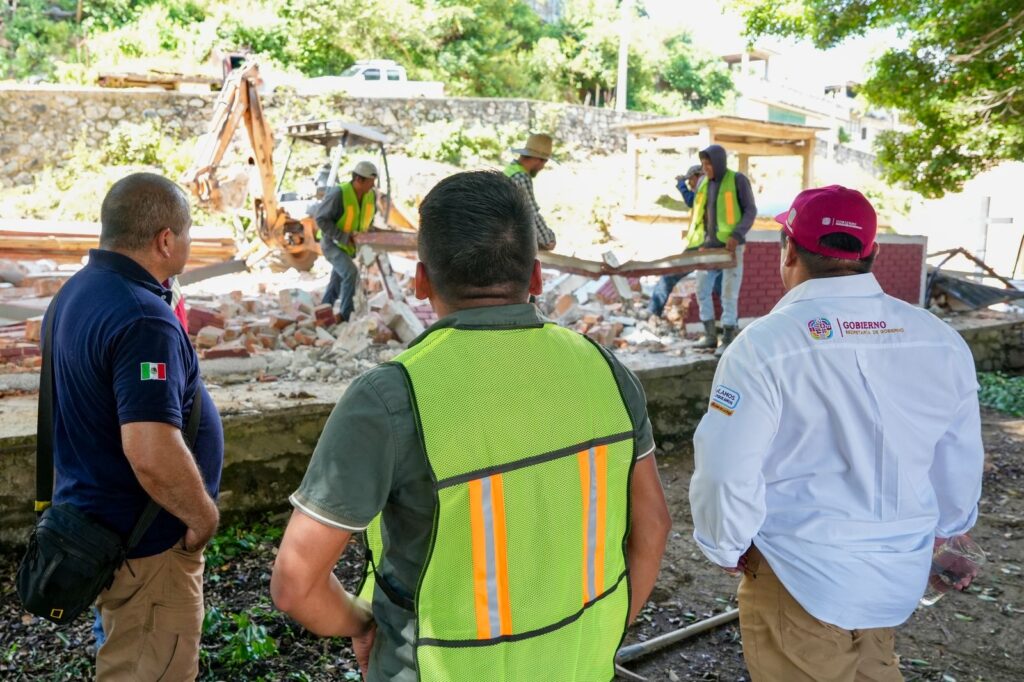 Asimismo, personal de salud trabaja en la reactivación y equipamiento de la clínica comunitaria. Aunado a ello, con el fin de fortalecer la reintegración social de las y los habitantes, la Primavera Oaxaqueña ha comenzado la construcción de un parque comunitario.