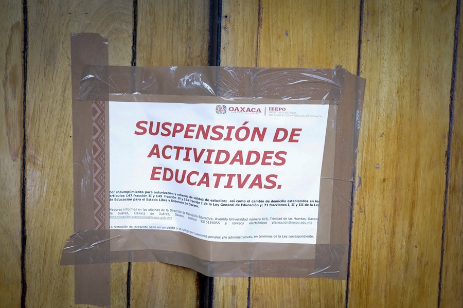 El director general del IEEPO, Emilio Montero Pérez informó que esta suspensión tiene carácter preventivo, de urgencia, progresivo y legalmente fundado. Su objetivo no es sólo inhibir la operación irregular, sino proteger el Interés Superior de la Niñez y asegurar que toda institución educativa opere con legalidad, transparencia y seguridad, por ello, el Instituto realizó la colocación de los sellos respectivos.