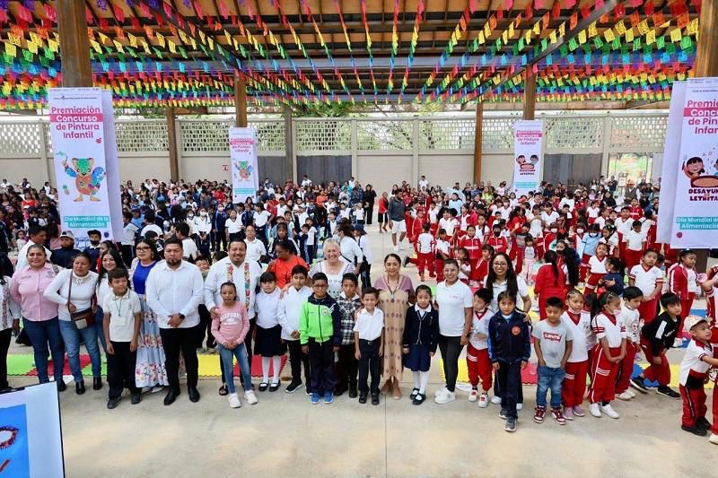 Oaxaca de Juárez, Oax. 1 de octubre de 2025.- Coloridas mesas con frutas y verduras frescas de temporada, sembradíos verdes con distinguidas cosechas de maíz, frijol y respeto por la naturaleza, así como deliciosos platillos regionales; fueron parte de los elementos que distinguieron a las obras ganadoras del Primer Concurso de Pintura Infantil “Niñas y Niños con Desayuno de Letritas Pintando una Alimentación Saludable”.