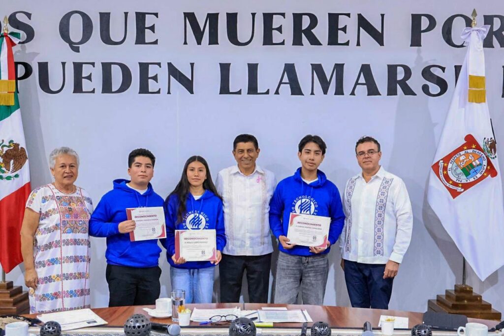 Oaxaca de Juárez, Oax. 12 de agosto de 2025.- En el marco del Día Internacional de la Juventud, el Gobernador Salomón Jara Cruz entregó reconocimientos a seis estudiantes provenientes de distintas regiones del estado quienes, con mérito académico y acciones de impacto social, obtuvieron una beca en el Instituto Tecnológico y de Estudios Superiores de Monterrey.