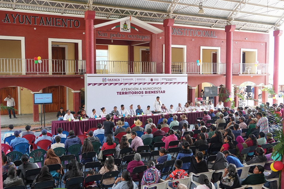 En San Miguel Quetzaltepec, ante el presidente municipal Pedro Sánchez Rojas, secretarias, secretarios y funcionariado, destacó que Oaxaca necesita del trabajo y la suma de esfuerzos de las autoridades municipales y el Gobierno estatal para revertir las condiciones de marginación de los pueblos mixes.