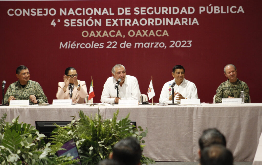 • Junto con los titulares de la Segob, Sedena y Semar, así como de la Secretaría de Seguridad Pública y Protección Ciudadana del Gobierno de México, encabezó la 4ª Sesión Extraordinaria del Consejo Nacional de Seguridad Pública realizado en Oaxaca